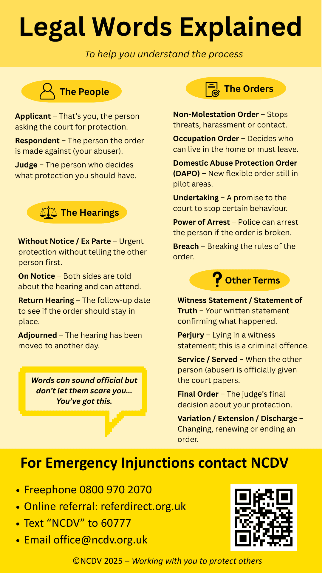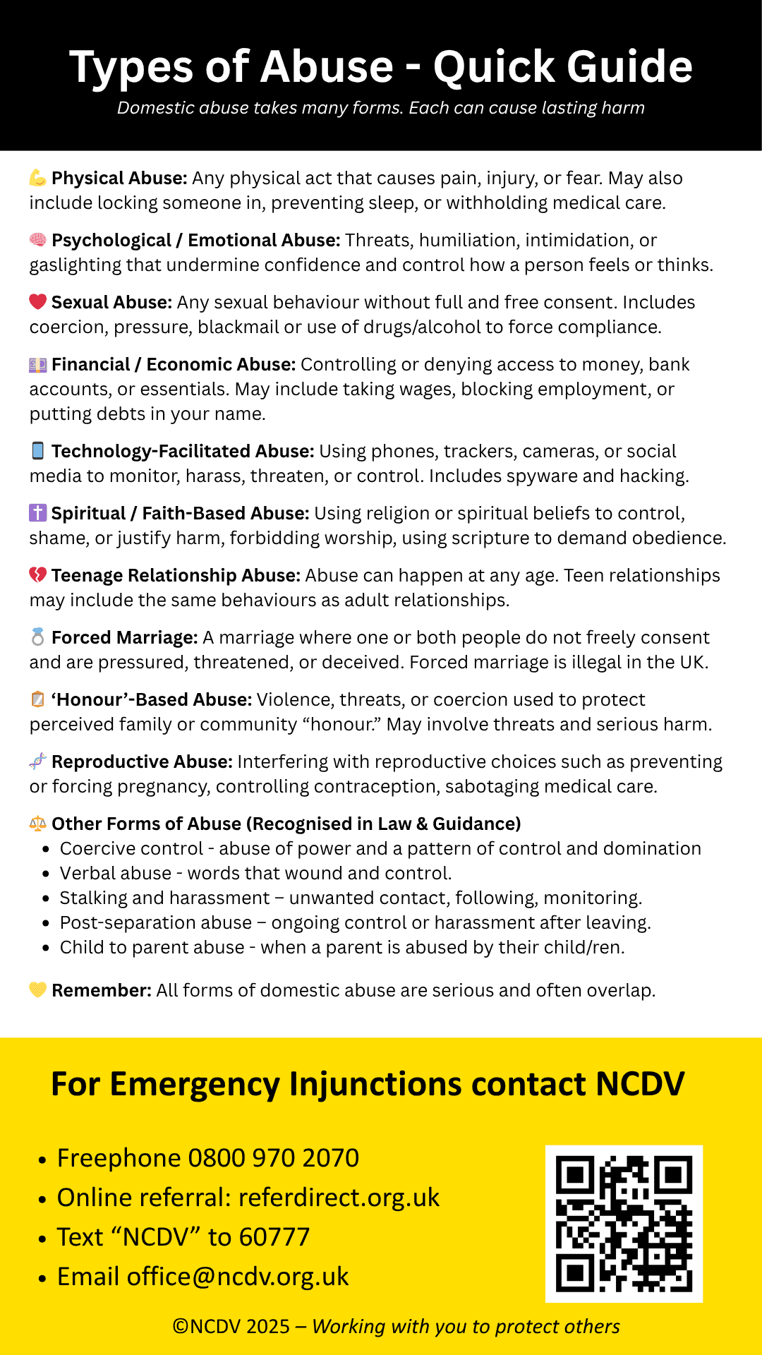 These short guides offer clear, accessible information for professionals, survivors and anyone supporting someone affected by domestic abuse. Each guide focuses on practical steps and plain-English explanations to help you understand risk, safety, rights and recovery.